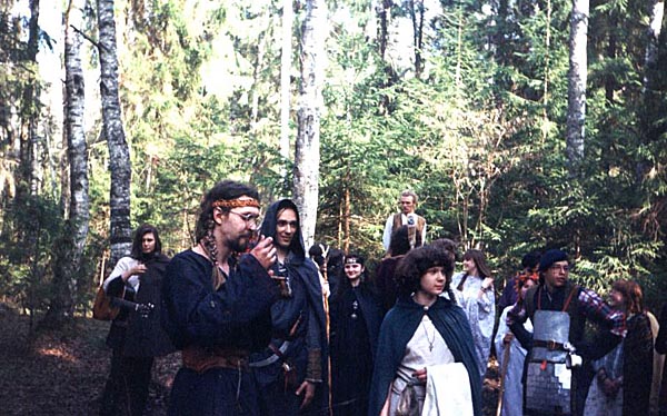 ![]() | Второе испытание - королевская пища - лосось в меду. И лосось (баночный)и мед были настоящими. Вопреки всем ожиданиям было вполне вкусно. Но есть, когда на тебя смотрят около ста человек... :-) Человек в плаще с капюшоном - Ирландец (сейчас - канд истор. наук, и как раз по Ирландии). Девушка на переднем фоне - Артемка. Справа в доспехе - Урукхай, рядом с ним Гелла, за ними просматривается Дамир (все трое из клуба "Старый Замок", Москва). | ![]() |