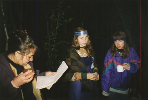 ![]() | 12.07.97 г., игра "Сильмариллион". Конец дня, неигровое время. Две замученные эльфийки и одна гостья. :-) | ![]() |