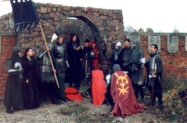 ![]() | Коронация у стен крепости. Все те же люди, на заднем плане еще одна девушка - Анри. А слева - подруга Гарольда. Минск, осень 1997 | ![]() |