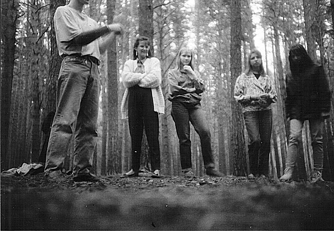 ![]() | Тренировка на поляне в академовском лесу летом 94-го года. Мужчину без головы (Шнарх?) и девушку в белой кофте(кажется Надя) уверено не опознаем, а дальше - Женя Бирюкова, потом Таня Коновалова и Настя. Женский батальон имени Петровича :) | |