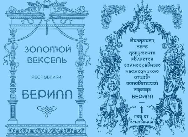 ![]() | Золотые Векселя (вид с обоих сторон) - важнейшая ценная бумага Берилла | ![]() |