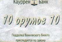 ![]() | Денежная купюра: 10 орумов. | ![]() |