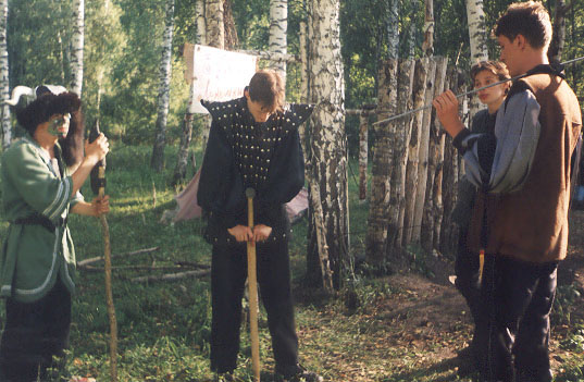 ![]() | Перед трактиром. Воин из племени варваров, Паганини, Бацилла и эльф из команды искателей Авалона | ![]() |