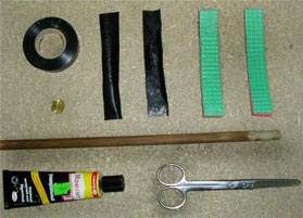изолента, одна монетка 5-10 копеек, плоски дерматина 2.5 на 14 см. две штуки, полоски «пенки» 2.5 см и длиной 13 см. две штуки, клей «Момент», ножницы, линейка.