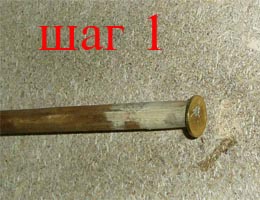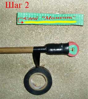Пятикопеечная монета приклеивается "Моментом" к торцевой части древка.