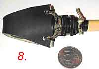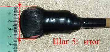 Крепление шнуром заканчиваем на основании наконечника. Готово! Если угодно, можете ради эстетичности покрасить наконечник серебрянкой. При попадании в цель такой наконечник упруго сминается до площади 3.5 – 4.5 см, что обеспечивает должную безопасность вашего оппонента.