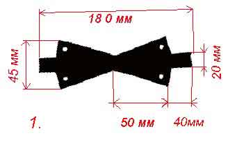 Вырезаем из типографской резины (либо другой сходной по упругости резине) будущий наконечник по данной схеме и данным размерам. Отверстия обязательно делаются выдавливанием из резины заточенной трубочкой, потому что при прокалывании шилом резина порвется от крепящих наконечник к древку ниток (см. далее)