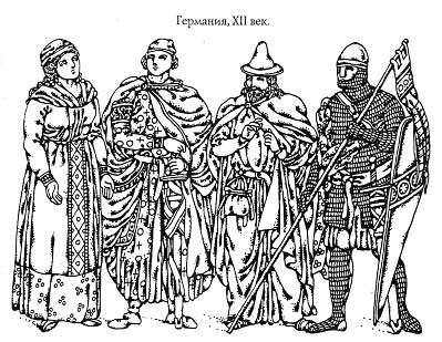ярких, дорогих тканей, чаще всего гербовых цветов. Новинкой моды XII