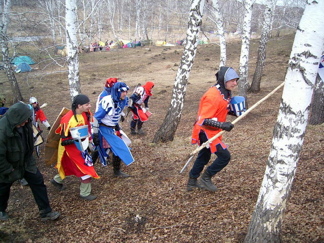 ![]() | Поход Ги и Амари на боронский совет в ставке короля Ричарда / Знаменосец (Димыч), оруженосец Ги (в желто-красном), Ги, на заднем плане Амари и оруженосец Торона | ![]() |