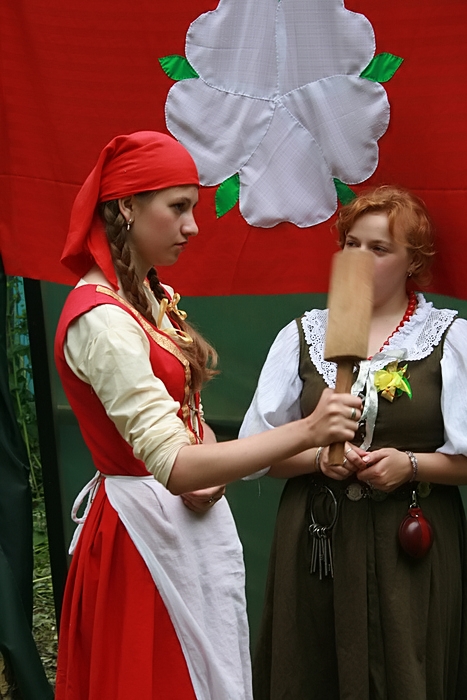 ![]() | Тем временем верные служанки отрабатывали технику боя на скалках. | ![]() |