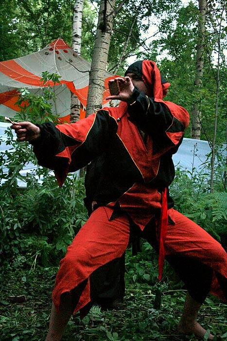 ![]() | Королевский шут Дуко изображает кайсанские единоборства с помощью куриной косточки и печеньки, которой, говорят, потом и отравится. | ![]() |